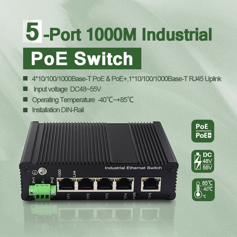 Гигабитный сетевой коммутатор Ethernet 10/100/1000 Мбит/с, 5-портовый промышленный коммутатор, DIN-рейка