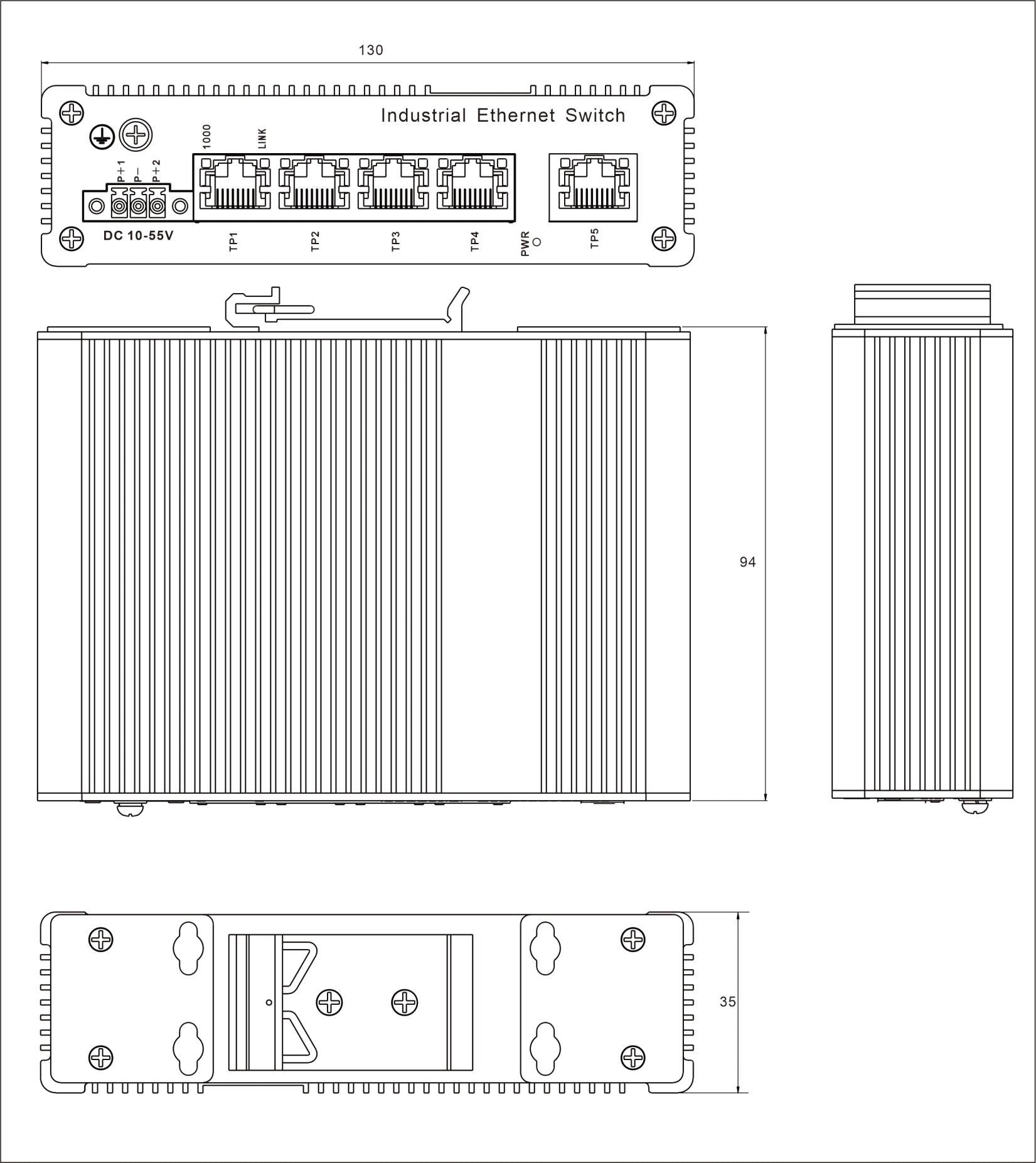 Неуправляемый гигабитный 5-портовый промышленный Ethernet-коммутатор